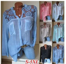 Build Summer large size womens shirt 2019 new long-sleeved lace shirt V-neck double pocket shirt Discount Price US $9.77 Buy Now!!! Reviews